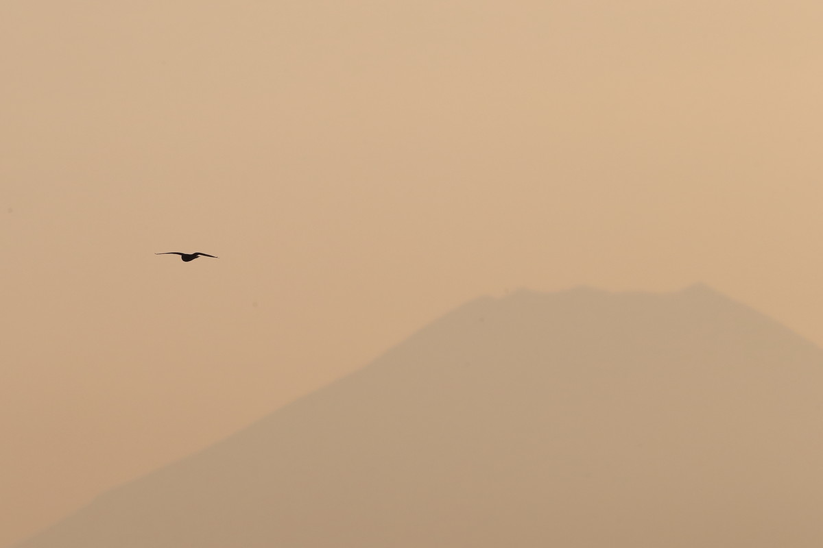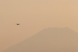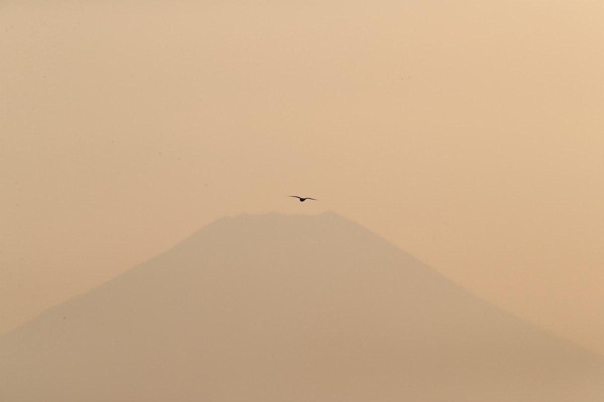 何とか写したが逆光の中、夕暮れの富士を背にしたこんな画だけ。