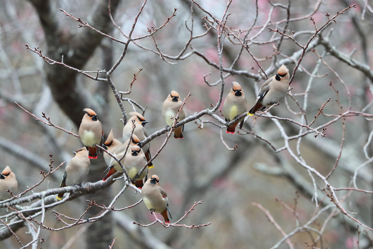 20羽以上の群れ、キレンジャクも6羽以上いたようだ。
