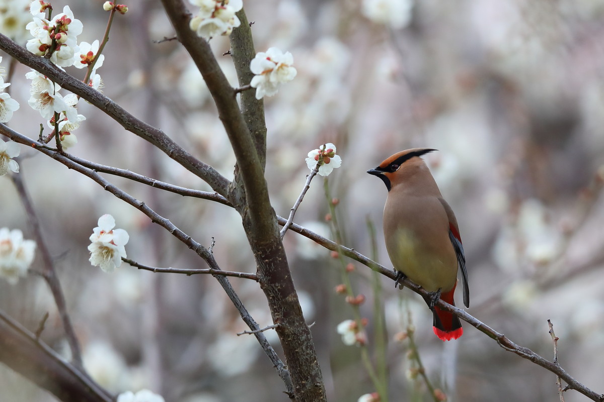 現地着8時半過ぎと遅いスタート、梅まつりで紅梅・白梅ともに満開だが、平日なのでまだ渋滞はなかった。 経験上、この時期この道は休日になるとすぐに車が動かなくなるのだが。
